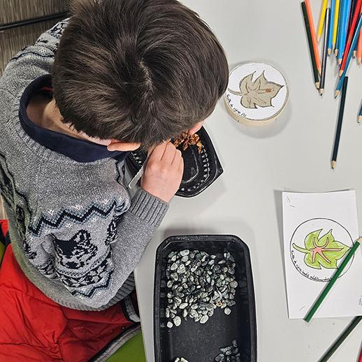 Un atelier d’initiation à la mosaïque romaine. Après observation des mosaïques du musée, les enfants en réalise une qu'ils emportent à la fin de la séance.
